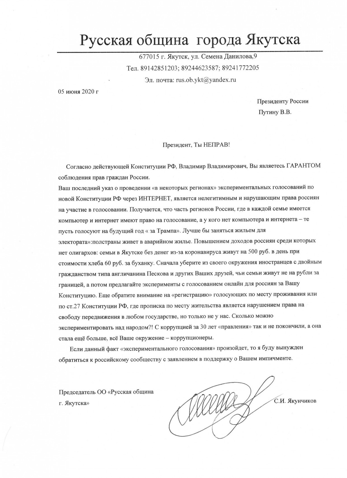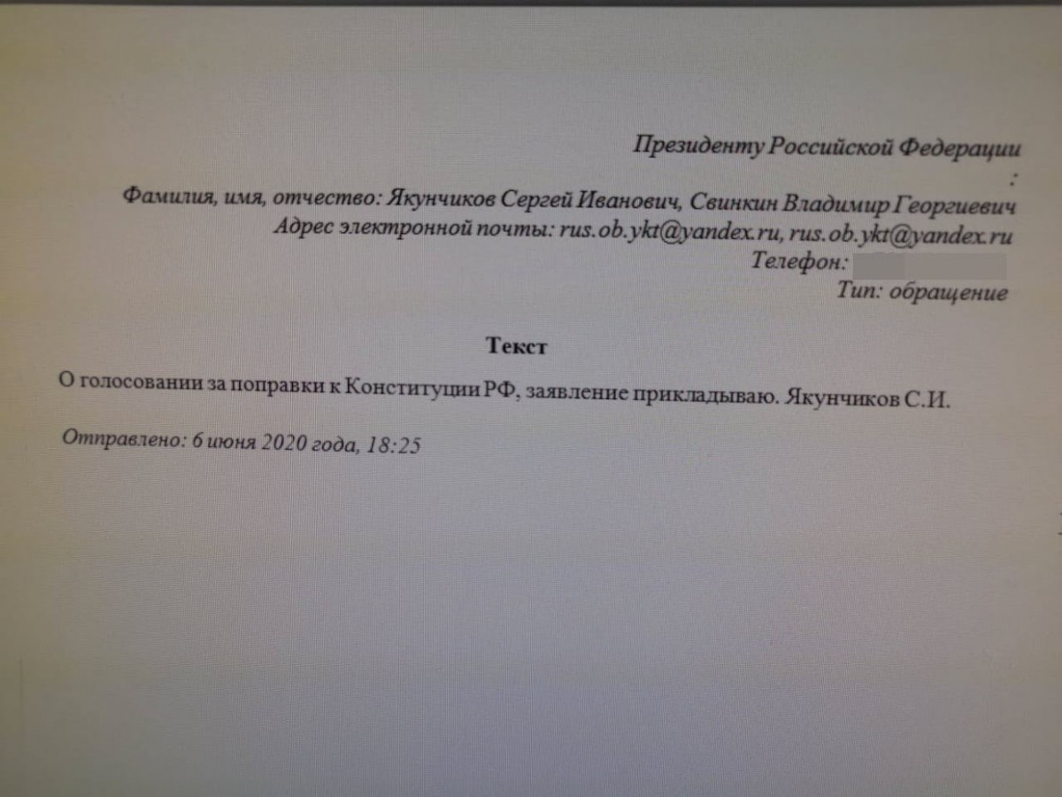 Председатель Русской общины Якутска Сергей Якунчиков высказался против голосования по поправкам в Конституцию через интернет.