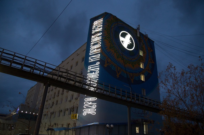 На территории аэропорта «Якутск», на фасаде гостиницы «Лайнер», заработала подсветка мурала. Архитектурно-художественная графика «Срединный мир» стала совместным проектом аэропорта, дизайнера и руководителя студии «Сулусчан-Арт» Ростислава Павлова и известной художницы Кыыдааны Игнатьевой.