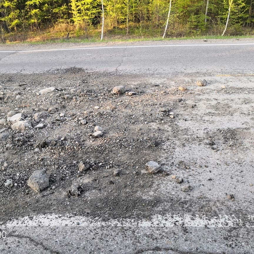 В данное время подрядчиком за свой счет выполнены работы по ямочному ремонту поврежденных участков дороги, выполнена заливка трещин и укладка верхнего слоя поврежденного дорожного полотна. Нарушения устранены.