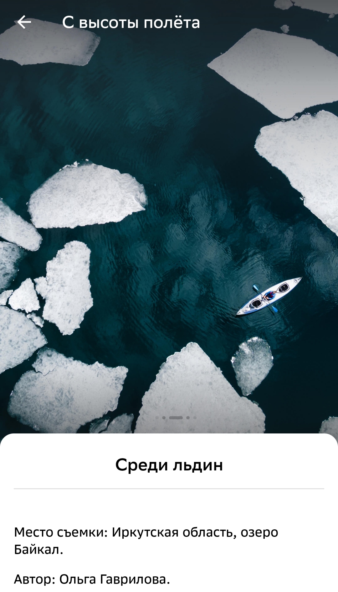 «Фотоконкурс «Самая красивая страна» — масштабный проект Русского географического общества, объединяющий лучших фотографов России. Работы победителей восхищают и завораживают. И нам очень хотелось, чтобы их увидели наши клиенты. Сейчас доступны зимние фотоработы с высоты птичьего полёта. Весной появятся весенние уголки России, потом соответственно можно будет увидеть летние и осенние виды страны. Открывайте Россию заново вместе с Русским географическим обществом и Сбером!».