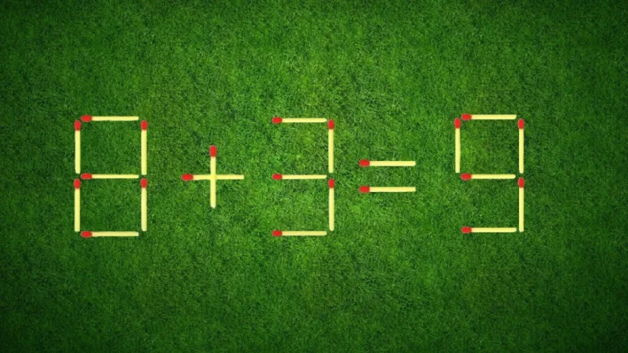 Перед вами из спичек выложено уравнение «8+3=9». Его нарочно составили неправильно. Ваша задача всего за один ход получить верное равенство, на головоломку вам выделяется всего 30 секунд. Для удобства можете поставить рядом таймер чтобы отслеживать свое время.