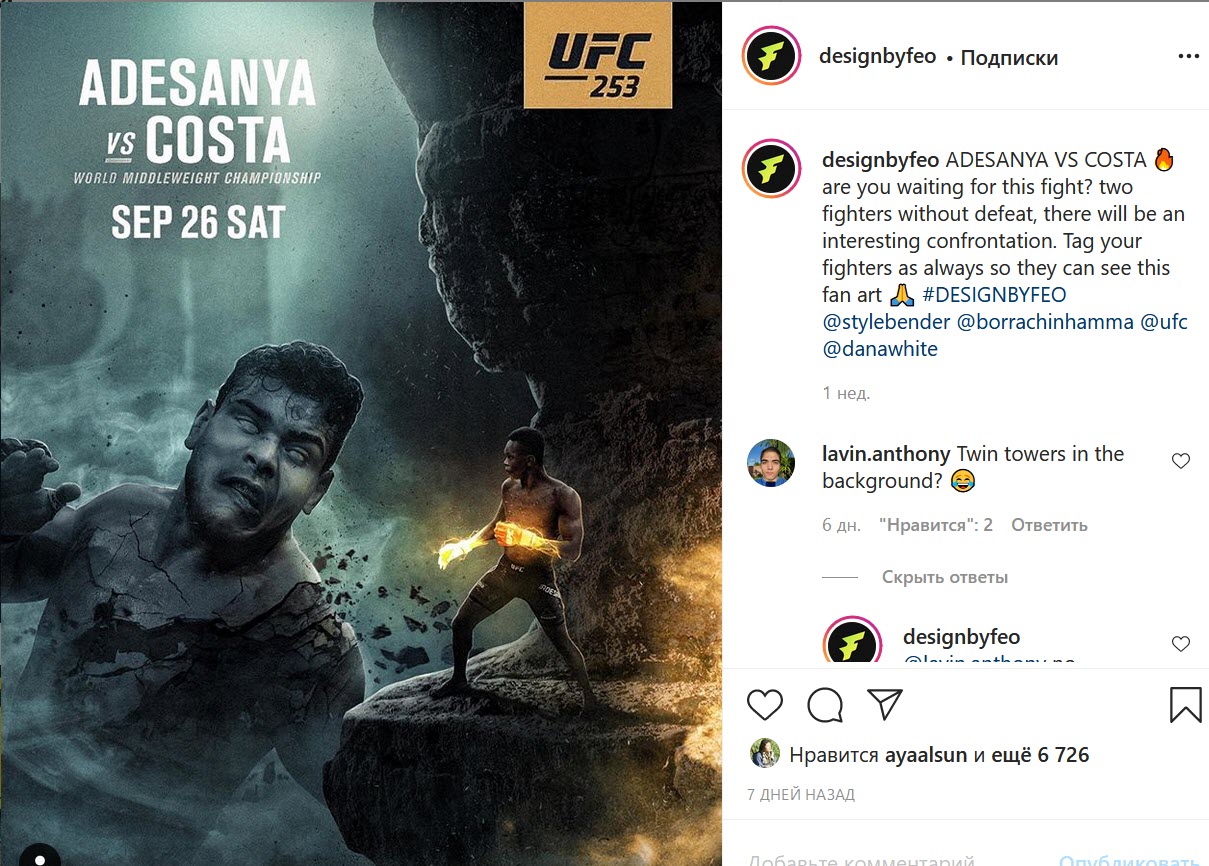 — Не все. Например, Хабиб выложил у себя без отметки. Я думаю, к нему это попало через кого-то. Скорее всего, ему кто-то отправил, и постер он не у меня увидел.