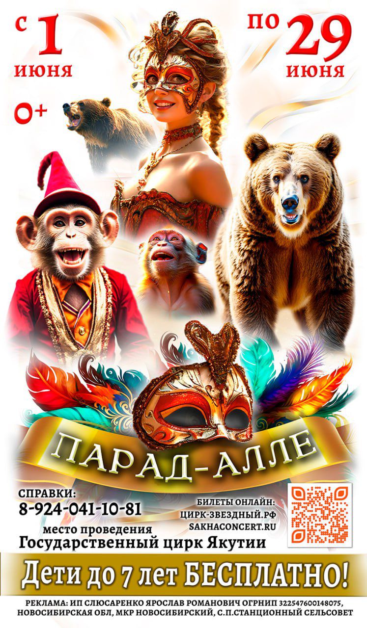 С 1 июня по 29 июня в Якутском стационарном цирке пройдет программа "Парад Алле"