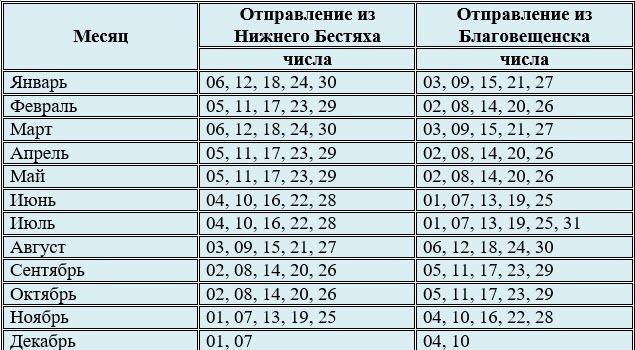 Также утверждены дни курсирования вагона беспересадочного сообщения «Нижний Бестях – Благовещенск» на 2020 год.