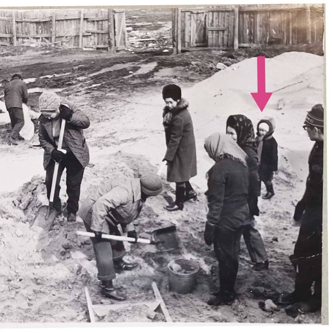 "На фото я, полноценный участник субботника по строительству здания горисполкома (мэрии) в 70-х годах прошлого века. В этом здании, будучи ребенком, каталась на лифте, меня ловили и вытаскивали из него. По его коридорам я бегала по вечерам, обожала эклеры из столовой на первом этаже. Чтобы я никому не мешалась, мне давали задание точить архитекторам карандаши или разносить бумаги по кабинетам. После окончания университета я пришла работать сюда. Тайком плакала в каморке на первом этаже, получив первый заслуженный втык от начальства. Это здание мне как дом, я знаю каждый его закуток, поэтому я так долго взвешивала решение".