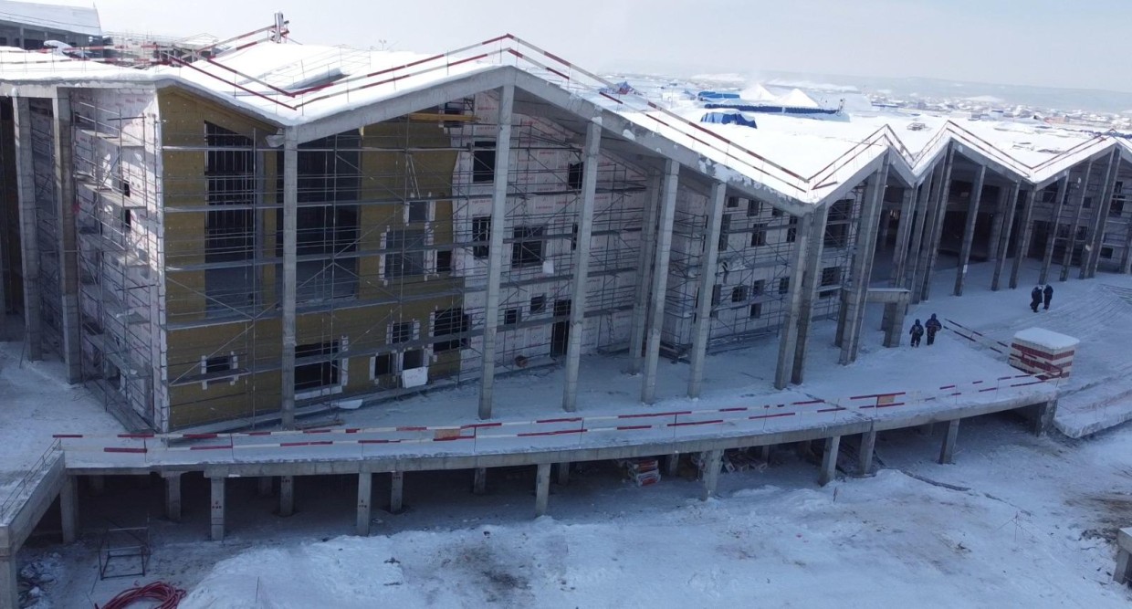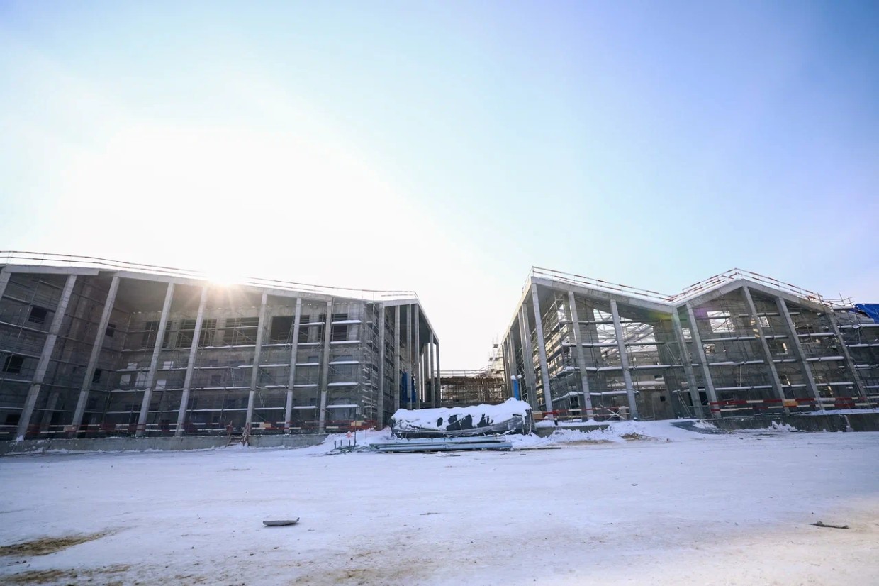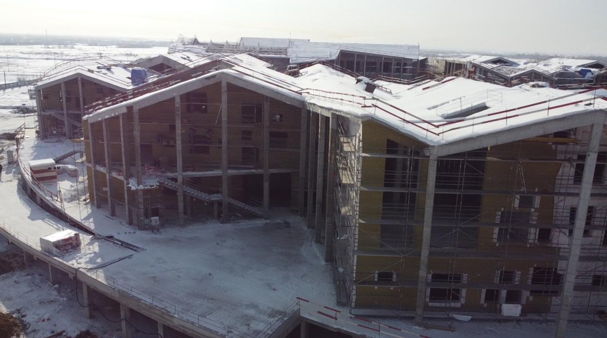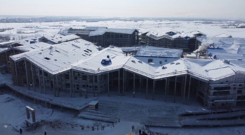 На площадке завершены монолитные работы по возведению каркасов всех школьных корпусов, жилого дома и транспортного терминала. Также была смонтирована постоянная котельная и все необходимое для отопления оборудование, установлен резервуар противопожарного запаса объемом 160 м³. Это обеспечит высокую степень безопасности объекта.