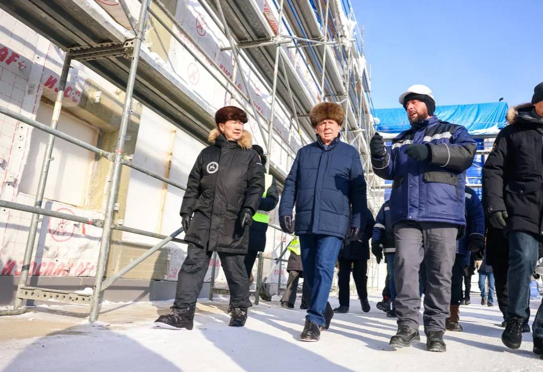 Сергей Чемезов, Альберт Авдолян и Айсен Николаев посетили стройку самого масштабного в Якутии образовательного комплекса «Точка будущего»