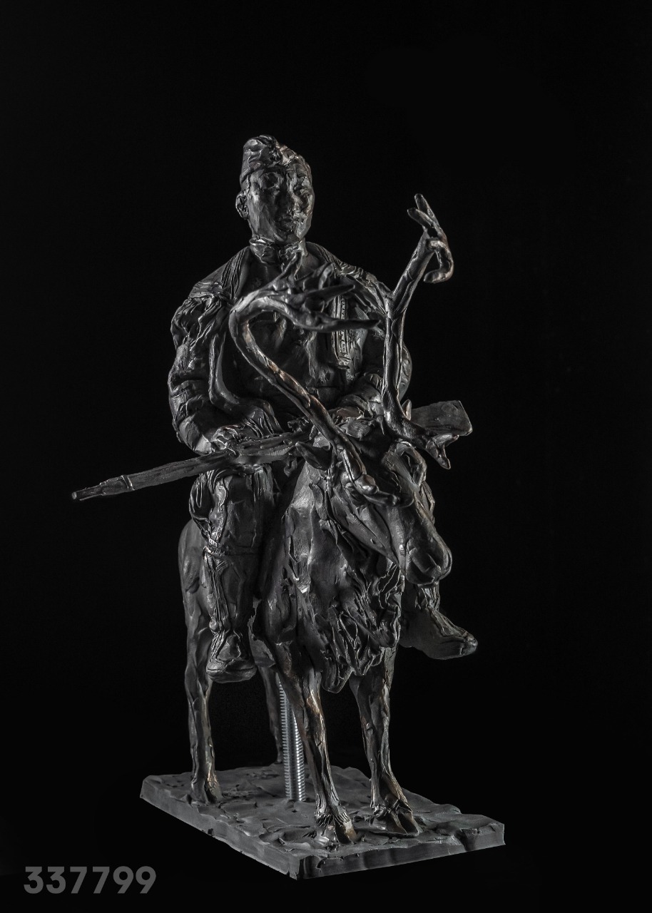 В скульптуре «Воин на олене» мне понравилась национальная одежда поверх гимнастерки, на которой видны медали. Отличная идея показать национальный колорит. На мой взгляд, олень – слишком оригинальное видение. Может возникнуть ошибочное мнение, что в бой шли на оленях. Я думаю, что национальную одежду можно показать накинутой на одно плечо, больше показать военную форму снайпера. Оленя, думаю, лучше использовать в композиции - но идущего рядом. В любом, случае это был честный конкурс! Пожелаем авторам успешной творческой деятельности.