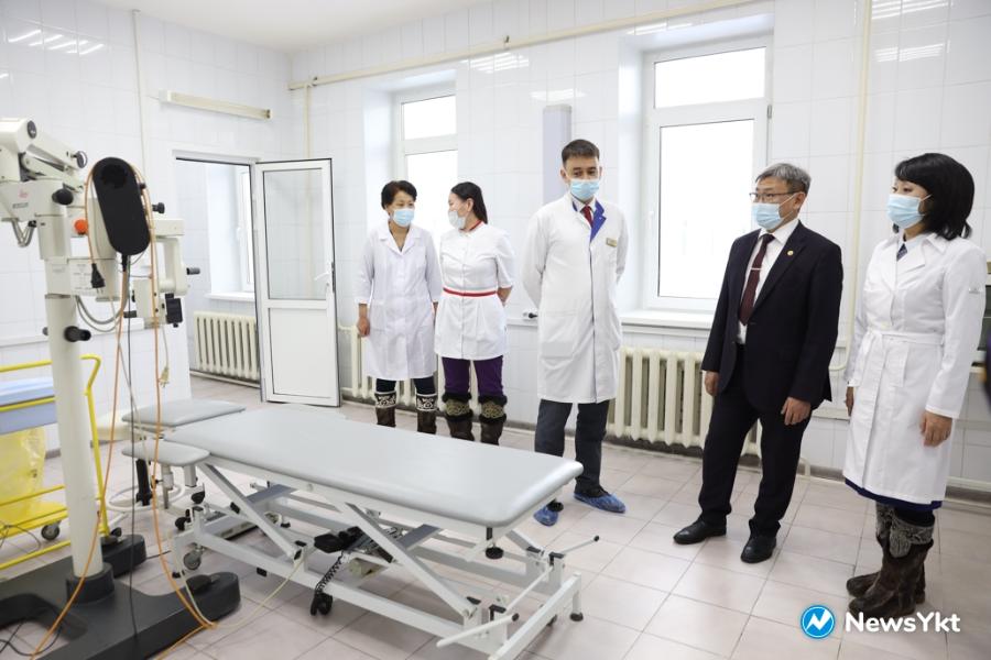 Диагностическая линейка, упрощающая длительность прохождения первичного осмотра тоже появилась в мае месяце 2021 года. Это нововведение для нашей больницы, чтобы пациент при обследовании не ходил из кабинета в кабинет, а получал необходимую диагностику в одно месте. Когда пациент обращается для первичного осмотра, он проходит его полностью на этой линейке. Время ожидания пациента в очереди значительно сократилось. Когда зрение у больных ухудшено, хождение по кабинетам и бесконечные очереди к ним доставляло лишние хлопоты. А линейка все эти проблемы устранила, позволив нашим пациентам получать всю диагностику в одном месте. Отдельно выведен консультативно-диагностический центр, открыты платное отделение, дневной стационар и физиокабинет. В этом же месяце открыт филиал в Медицинском центре города Якутска.