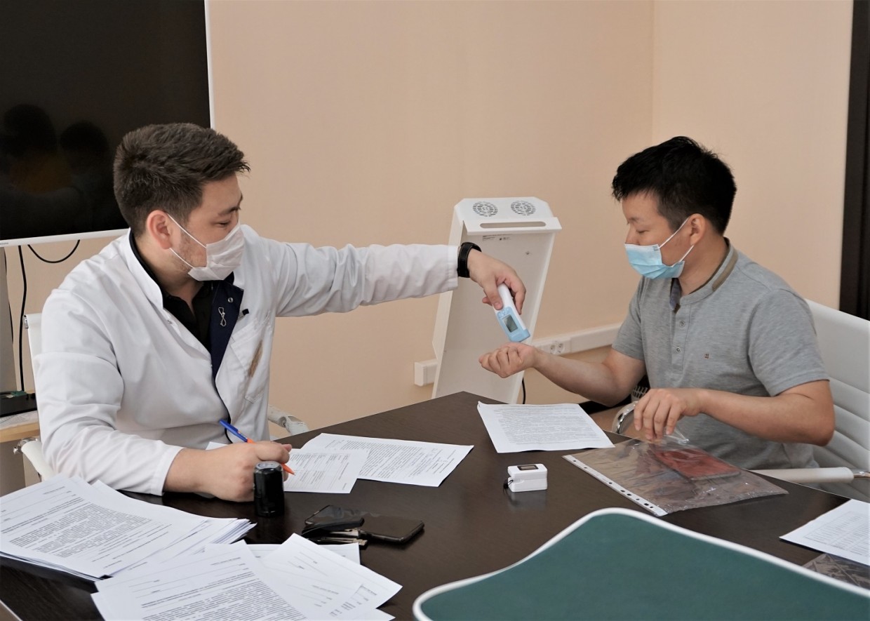 Вакцинацию в Якутском офисе «Полиметалла» провела выездная бригада Якутской городской клинической больницы №2. Перед этим работники компании заполнили анкету и оформили согласие: решение по получению инъекцию каждый сотрудник принимал добровольно. Каждого сотрудника сначала обследовал врач: измерил температуру, проверил давление, пульс, сатурацию. Медицинский отвод никто не получил.
