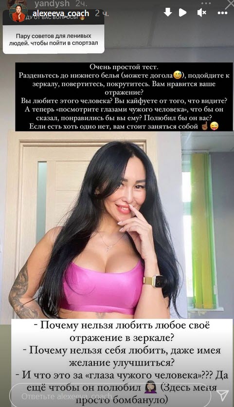 Совет фитнес-тренера "посмотреть на себя глазами чужого человека" возмутил коуча Алену Алексееву