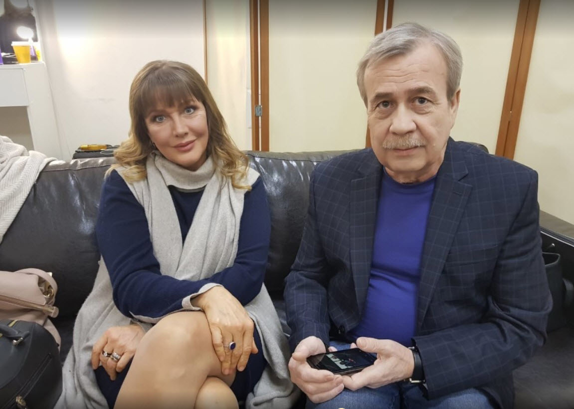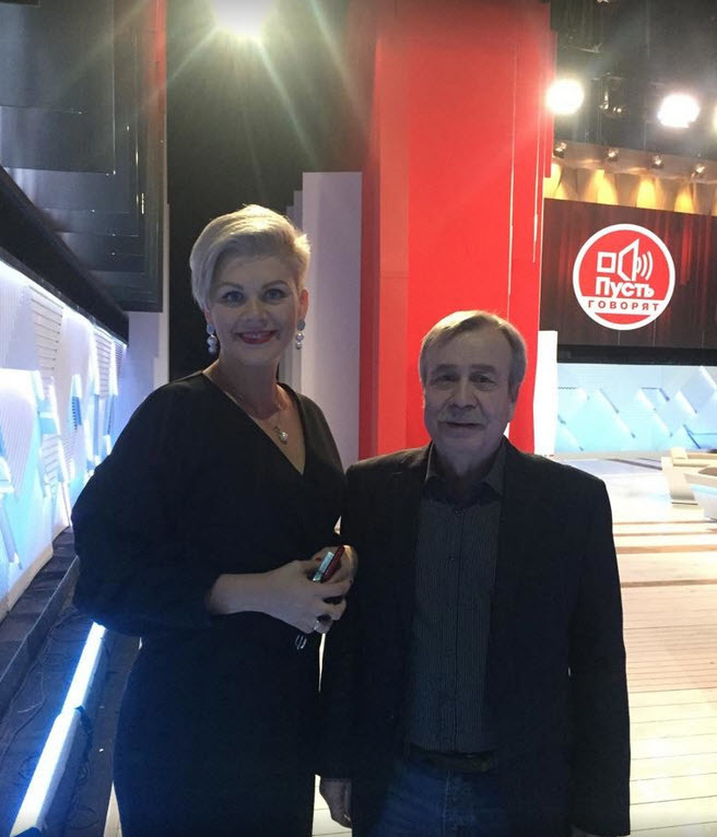 Фото из соцсетей: Елена Коренева и Александр Добрынин на съемках программы