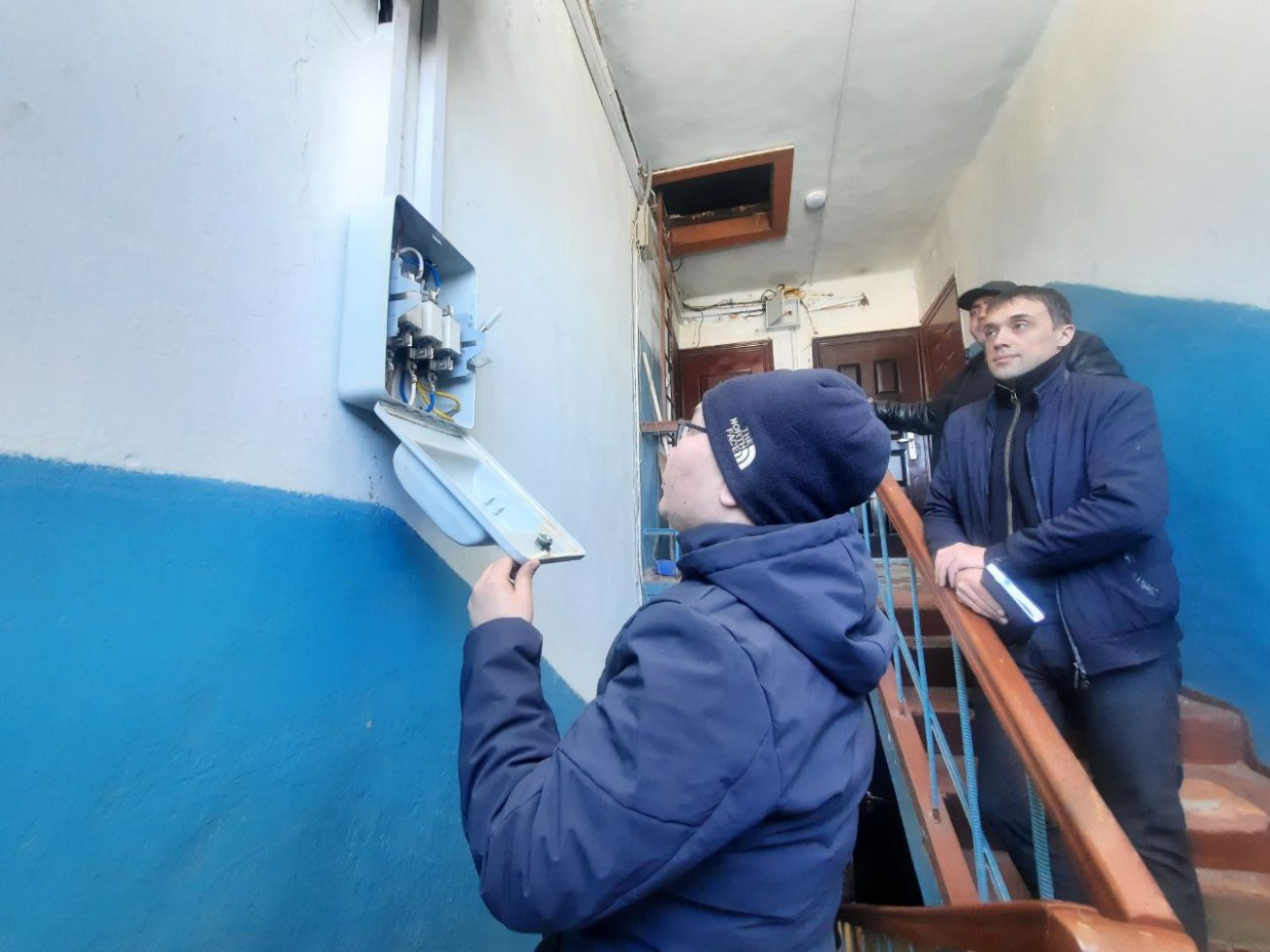 В поселке Нижний Куранах проживает более 5 тысяч людей. В рамках выездной проверки ведущий инженер Фонда Гаврил Давыдов проверил работы в трех объектах, где проводится замена системы электроснабжения — ул. Строительная, д. № 2, № 4 и № 6.