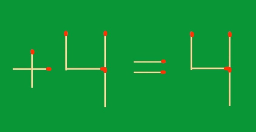 Эта задачка на перестановку не такая простая как может показаться на первый взгляд. Чтобы получить верное равенство, вам нужно было забрать две спички из числа «9», и превратить их в «+». Его мы ставим перед первым значением. Ответ: «+4=4».