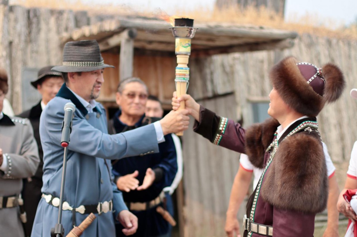 Первым факелоносцем эстафеты, которому был передан огонь на священном аласе, стал заместитель Председателя Правительства Республики Саха (Якутия) Сергей Местников.
