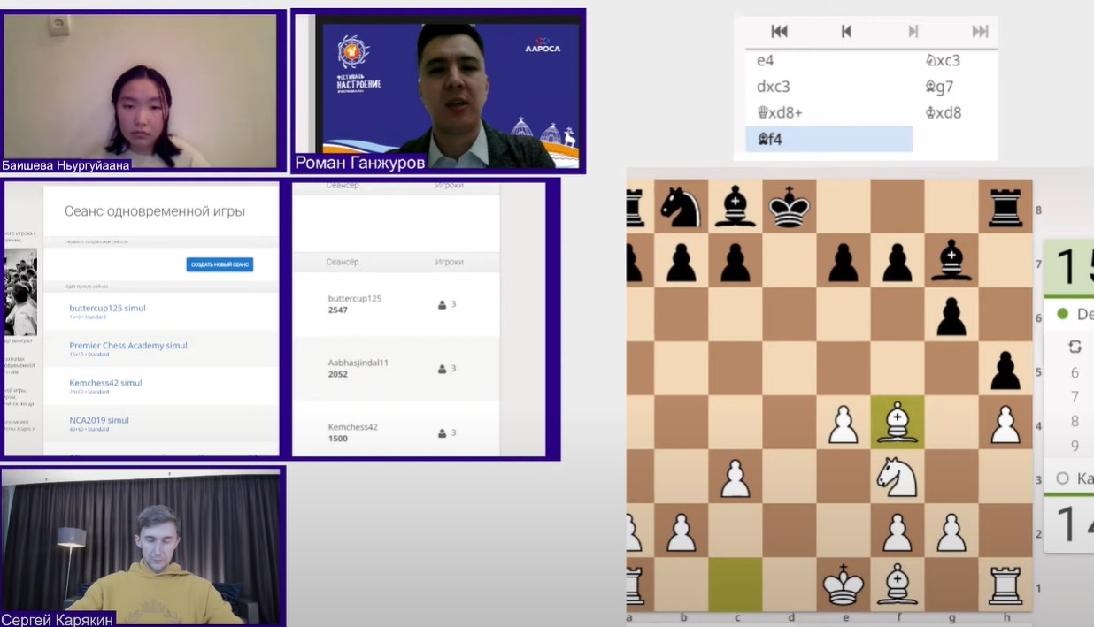 Один из самых титулованных шахматистов мира Сергей Карякин дал открытый урок юным якутянам. В режиме онлайн к редкому событию подключились не только спортсмены, но и все любители шахмат республики.