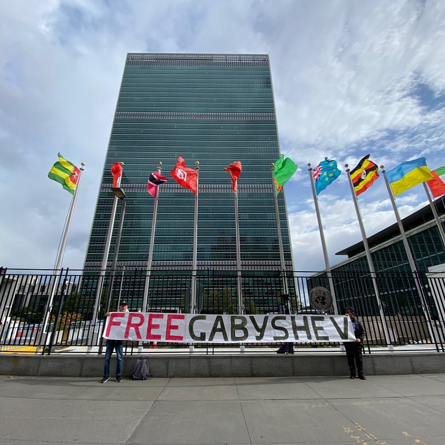 Валерий Иванов и его старший сын организовали пикет в защиту Александра Габышева у штаб-квартиры ООН в Нью-Йорке. Якутяне, проживающие в США, подготовили к пикету плакат "СВОБОДУГАБЫШЕВУ" ("FREEGABYSHEV").