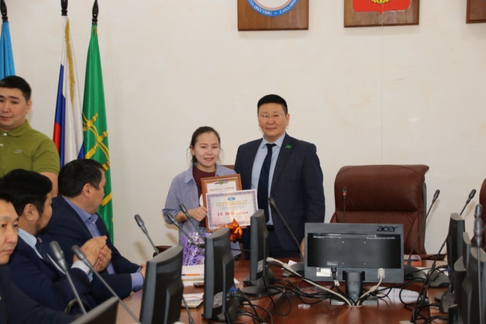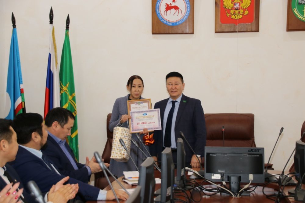 Эдэр ыалларга алаһа дьиэлэр күлүүстэрин, ону таһынан Сунтаар улууһун сайдыытын кэмиэрчэскэйэ суох тус сыаллаах пуондатын кэпсэтиитинэн, улууспут урбаанньыттарын — Седалищева З.В. ООО «Сайдам», Оконешникова М.П. ООО «Комплексстрой», ИП КФХ Попов С.В., ИП Васильева С.А., ИП Егоров Г.С ааттарыттан эдэр ыалларга дьиэҕэ киириилэринэн 15 тыһ. сууммаҕа миэбэл ыларга сертификаттары уонна «Туймаада» маҕаһыын ИП Герасимова А.П. бэлэхтэрин улуус Аҕа баһылыга Анатолий Григорьев туттарда.
