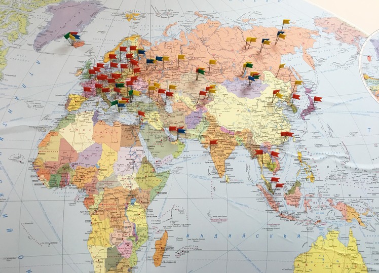 Флажками отмечены места, где уже установлены якутские сэргэ. Фото Ольги Миронович.