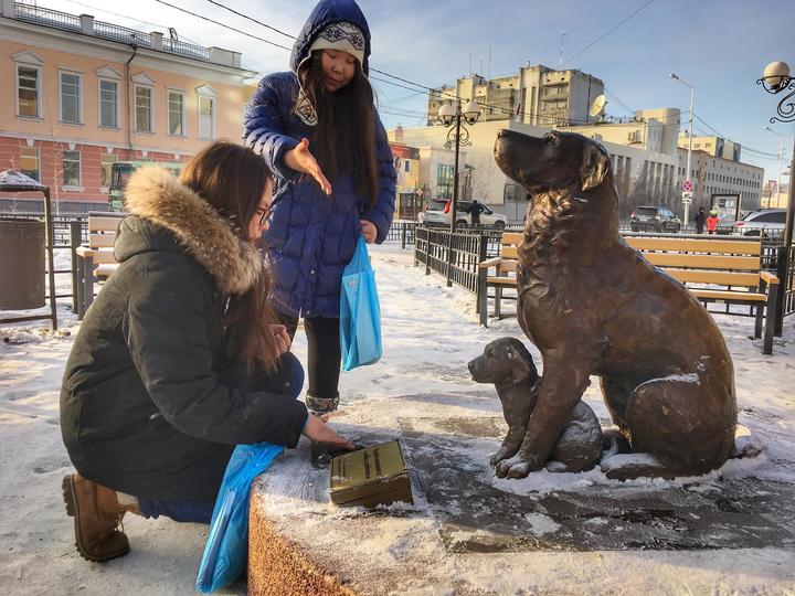 Есть памятник картине знаменитого якутского художника Чикачёва… Памятник собаке, которая спасла заблудившуюся в тайге четырёхлетнюю девочку... Памятник бездомным животным. Причём это памятник-копилка, с помощью которого местная зоозащита собирает деньги на приют для братьев наших меньших.