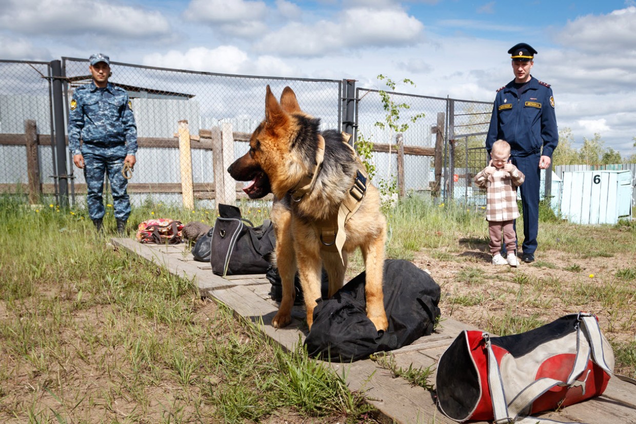 Четырехлетний Владимир с интересом наблюдал за щенками, которых кинологи готовят к несению службы по специальному и общерозыскному профилям. Специально для мальчика кинологи продемонстрировали элементы совместных игр и упражнений, направленных на приучение к раздражителям окружающей среды и выработку условных рефлексов и навыков.