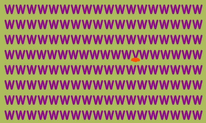 Сейчас мы предлагаем вам проверить свою внимательность. Перед вами нешуточное изображение букв W. Вам необходимо сосредоточить своё внимание и найти среди множества этих букв, одну V.