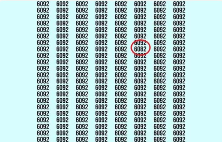 Перед вами изображение, на первый взгляд заполненное только цифрами «6092». Но не дайте себя обмануть! Где-то среди этих повторяющихся комбинаций прячется одинокая цифра, которая отличается от всех остальных... Ваша задача — найти её всего за 22 секунды.