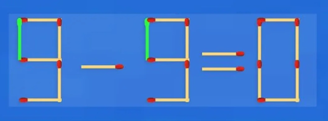 Если вы хотите проверить себя, то посмотрите на изображение. Вам нужно было взять из знака «+» и числа «8» по одной спичке, дальше две «3» превращаем в «9». Ответ: «9-9=0».