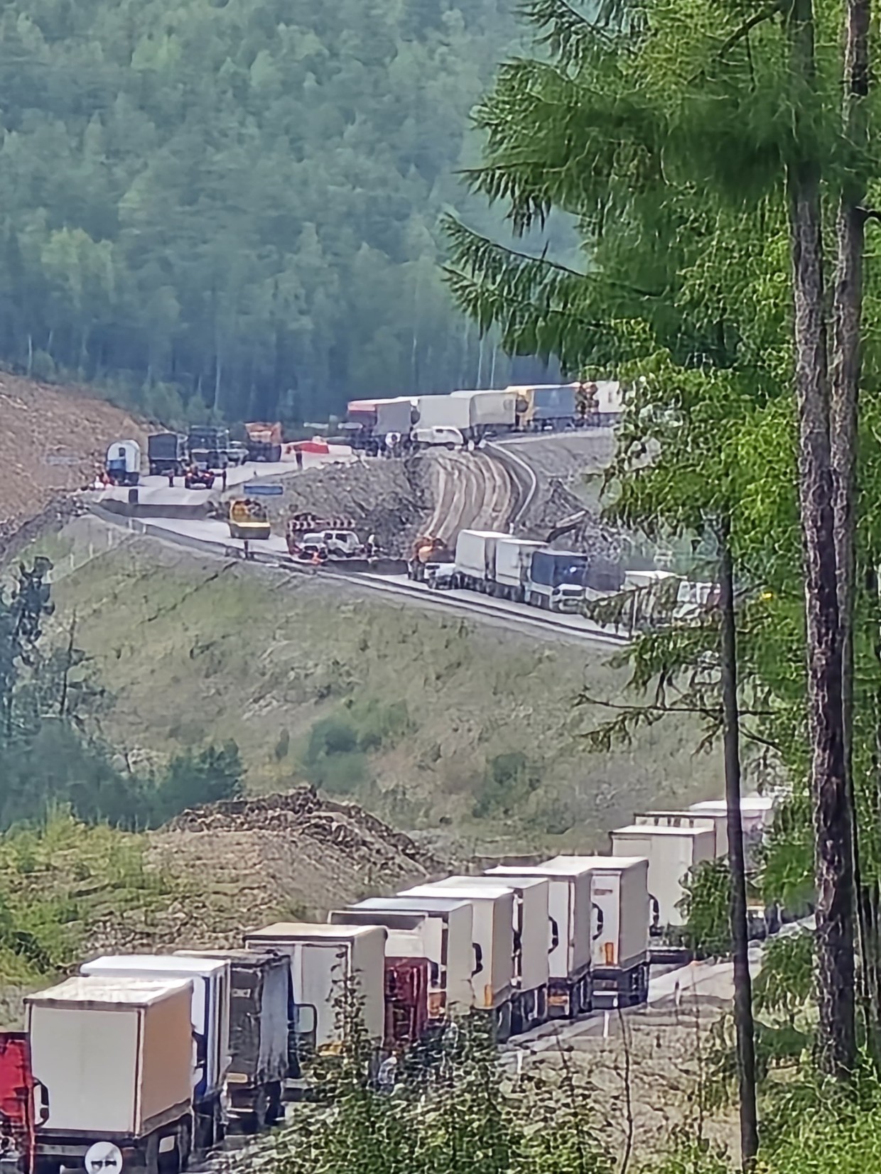 Фурам не повезло. Километровые пробки! Легковые тоже стояли, но в итоге проехали.