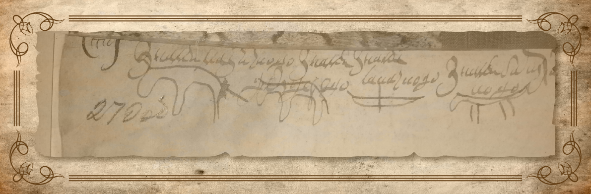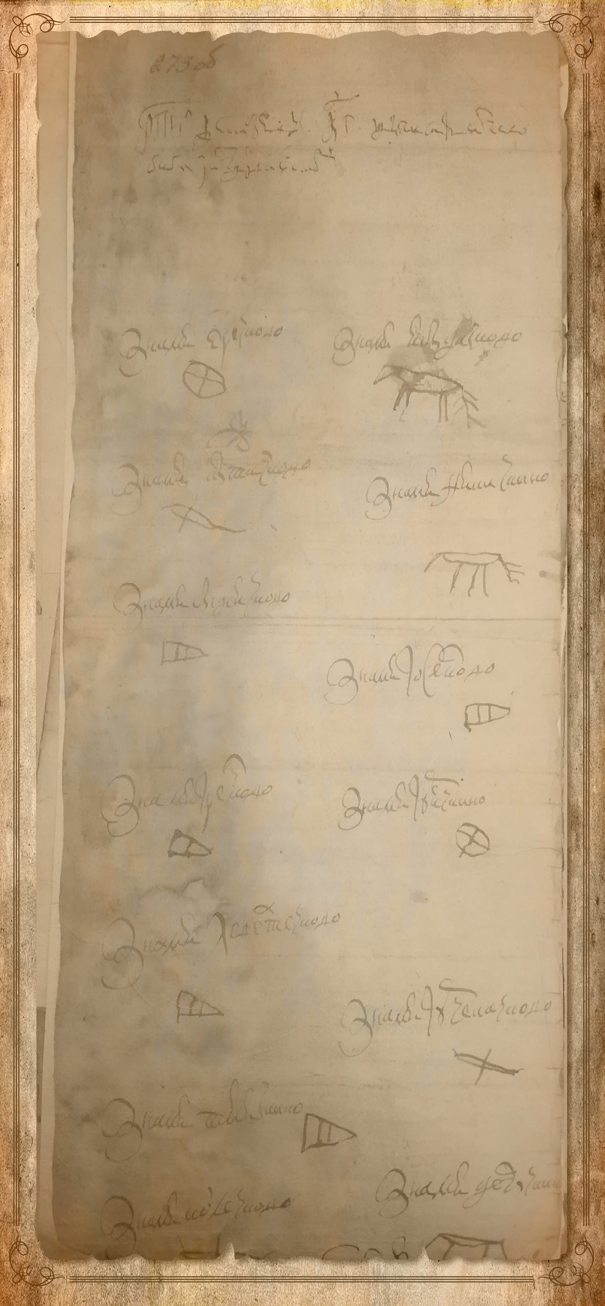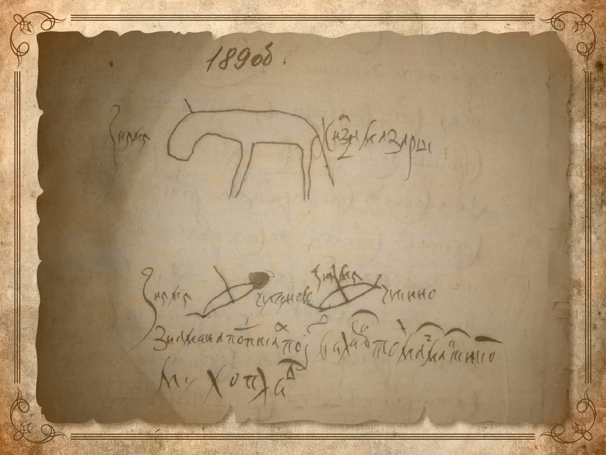 [9] И против сего челобитья в Сибирском приказе выписано. В Ленских ясашных книгах 1677/78 году, каковы присланы к Москве, в нынешнем во 1680-м году за рукою воеводы Фомы Бибикова написано: Кангалаской волости Мазары Бозеков, ясаку на нем взяти на 1677/78 год по окладу 10 соболей, и те государевы соболи на нем, Мазаре, взяты сполна. А с Лены из Якуцкого в отписках и в проезжих якуцких грамотах, как он был во 1676/77-м и в нынешнем во 1680-м году написан князцом» [10]. На обороте челобитной Мазары Бозекова имеется изображение его «знамени» [11].