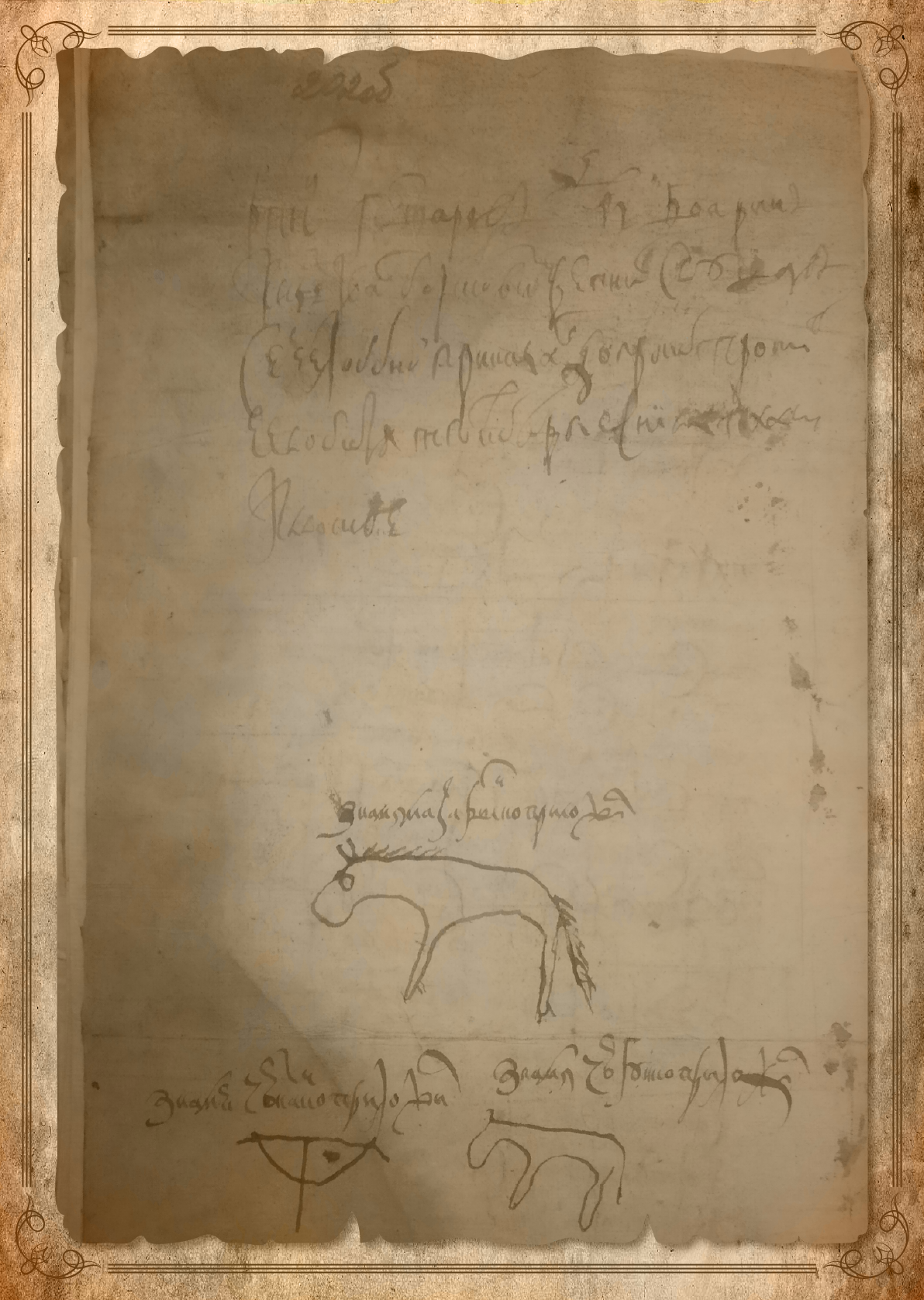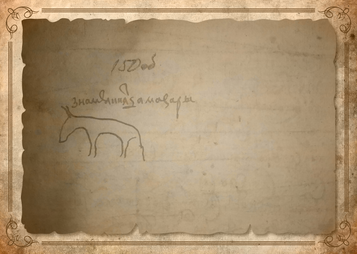 На обороте записи имеется изображение «знамя князца Мазары» в виде традиционной лошади (Ф. 214. Оп. 3. Ед. хр. 899. Л. 150 об.)