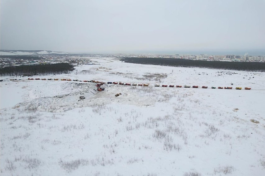 Уборка снега в Якутске: временный полигон на Вилюйском переулке не справляется с потоком машин