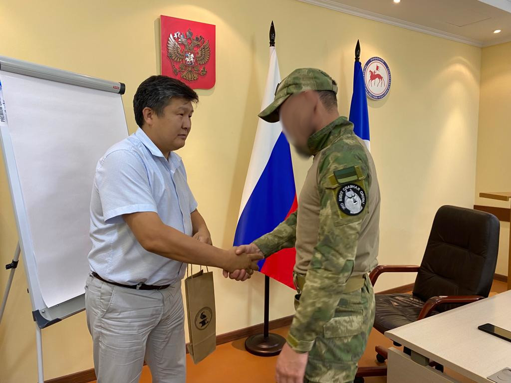 Сегодня, 18 августа, руководитель Департамента внутренней политики администрации главы и правительства Якутии Александр Трофимов торжественно вручил большой группе военнослужащих, прибывших в краткосрочный отпуск на родину из зоны проведение специальной военной операции, якутские ножи.
