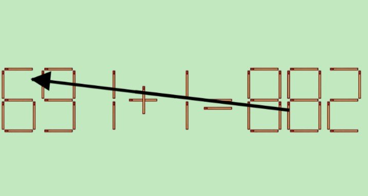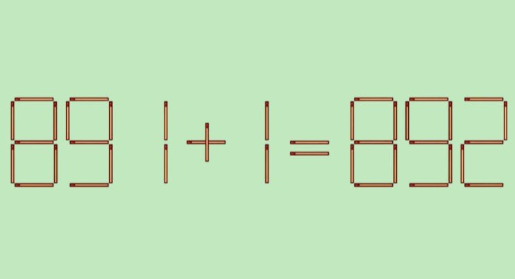 Сравните свой ответ с нашим, чтобы понимать, что задачу решили верно. Спичку нужно переставить так, чтобы получилось 891+1=892.
