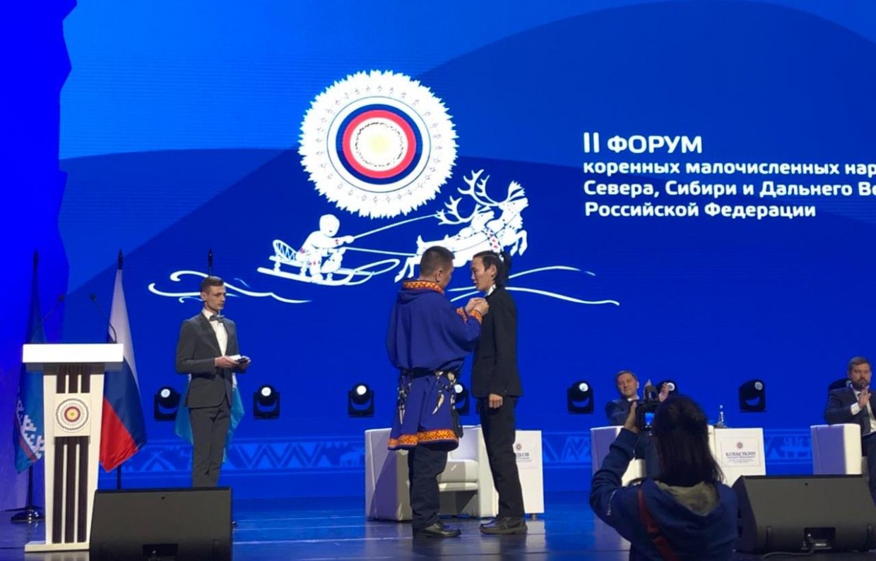 Уроженец села Себян-Кюель Кобяйского района Якутии Сергей Кривошапкин сегодня, 6 апреля, на Форуме коренных малочисленных народов Севера, Сибири и Дальнего Востока в Салехарде награжден медалью «Полярная звезда».