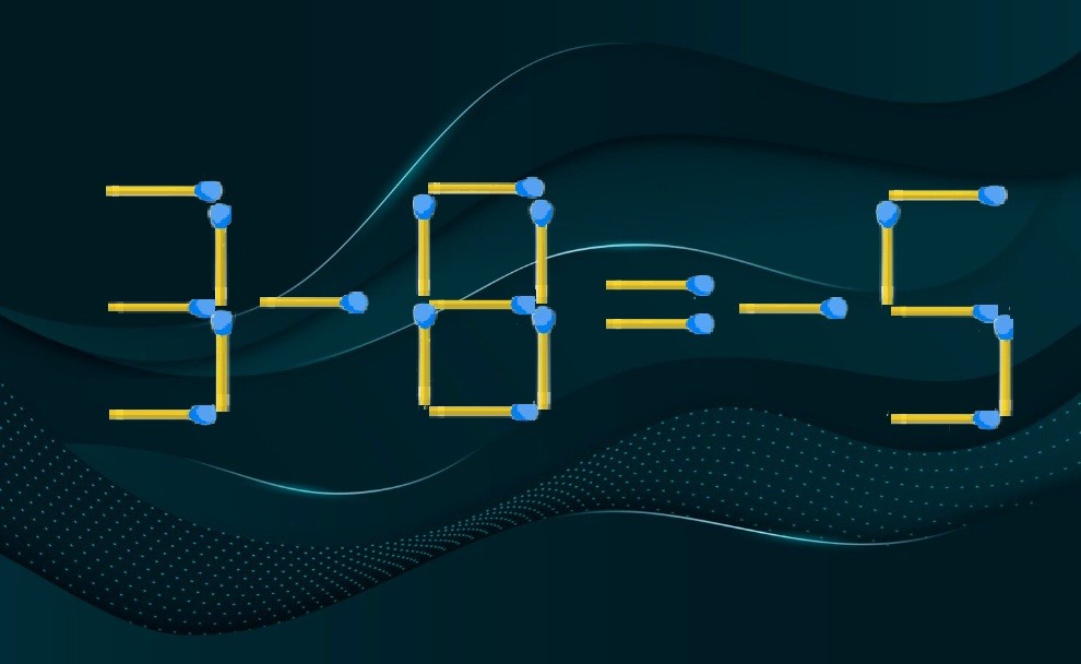 Правильное решение было у вас под носом. Достаточно переместить спичку из цифры 9 в ответ, и получается верное равенство 3-8=-5. Идеально! Решите еще одну головоломку, закрепите эффект.