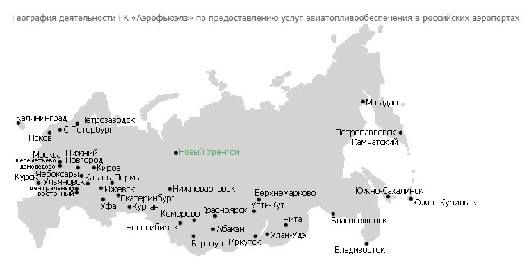 Кроме «Аэрофьюэлз», в аэропорту «Якутск» в скором времени начнет работать «Газпромнефть-Аэро», другой крупнейший авиатопливный оператор, располагающий 66 сбытовыми подразделениями в аэропортах России и Киргизии» - сообщает пресс-служба аэропорта Якутска.