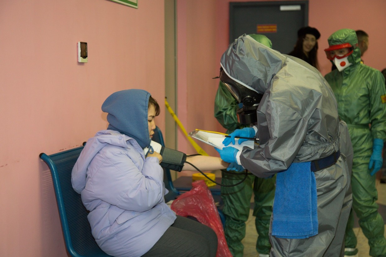 По легенде, на борту самолета, следовавшего из Харбина (КНР) в Якутск, находился пассажир, который во время перелета почувствовал себя плохо. Женщина обратилась с жалобами к бортпроводникам: у нее обнаружилась повышенная температура, головная боль, боли в мышцах. Экипаж, действуя по плану взаимодействия, сообщил в аэропорт прибытия о пассажире с подозрением на заражение особо опасной инфекцией. Далее, по схеме, производственно-диспетчерская служба аэропорта «Якутск» оповестила о форс-мажоре пограничную и таможенную службы, санитарно-карантинный пункт, вызвала скорую медицинскую помощь.