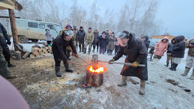 После торжественного открытия все собравшиеся отправились в усадьбу Христофора Максимова, где мастера оборудовали кузницу. Известные кузнецы научили гостей делать простые металлические инструменты. Перевод @yakutsk_newss