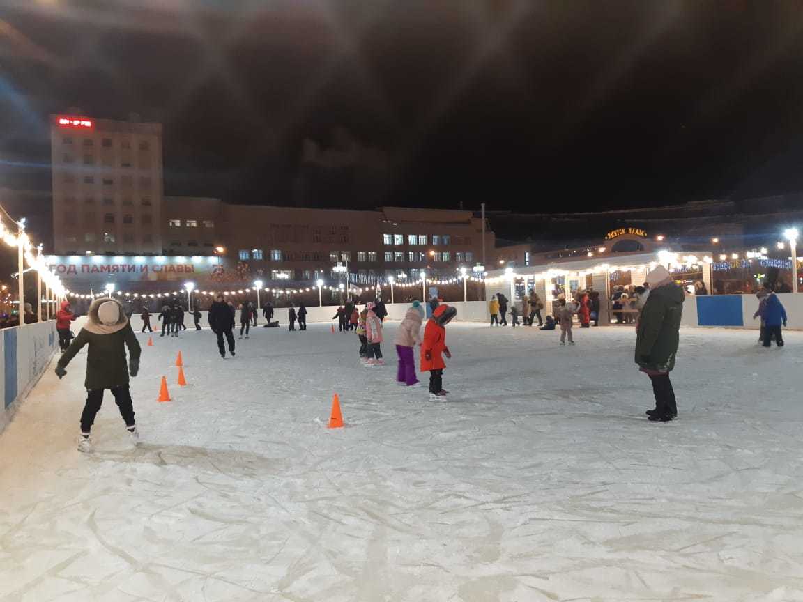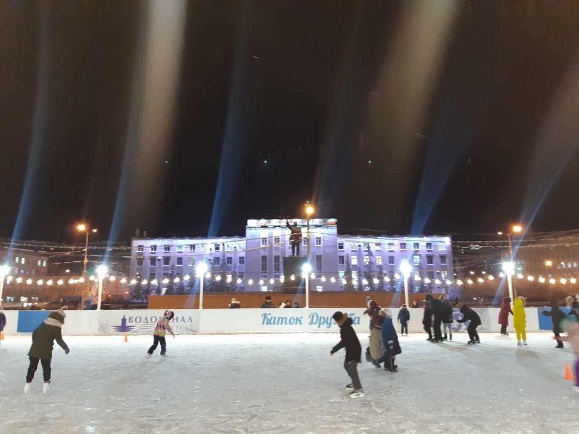 Сегодня 11 февраля в шесть вечера на площади Ленина заработал долгожданный каток. Он организован силами АО "Водоканал" совместно с советом отцов города Якутска.