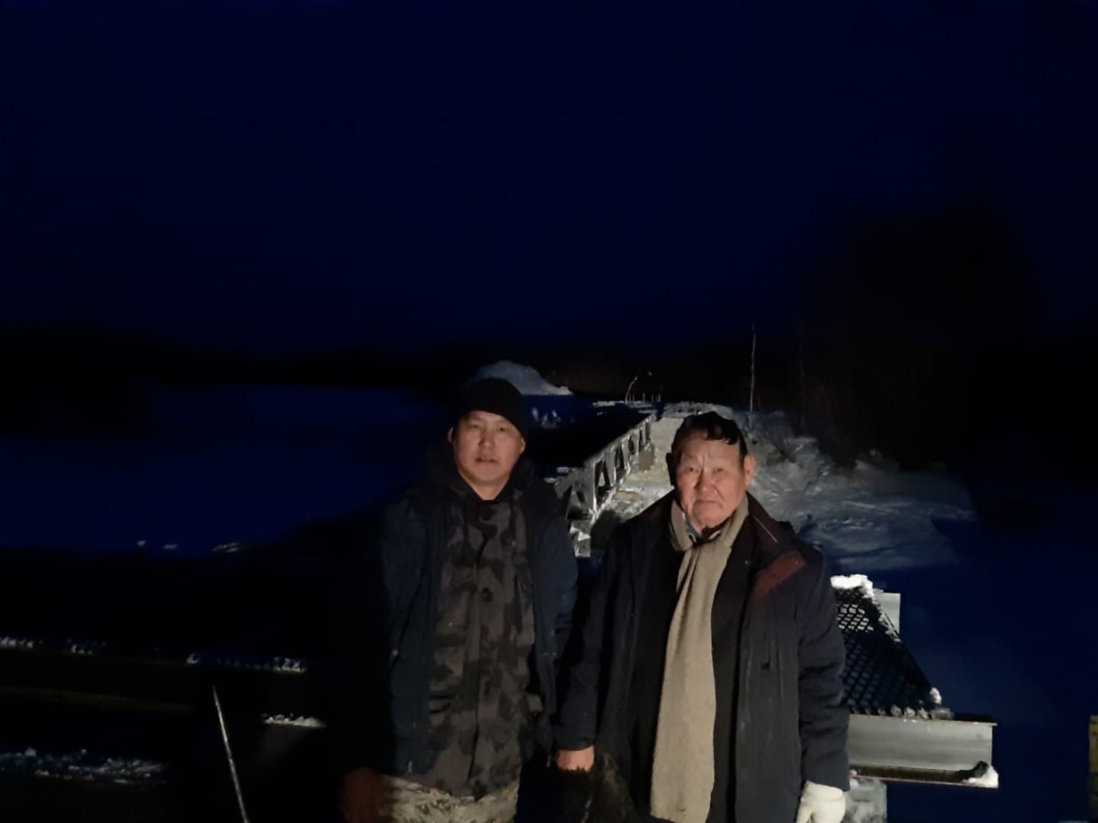 «Новый пешеходный мост ставит бригада Дмитрия Евграфова. Крановщик Егор Цой мастерски уложил основной пролет, соединяющий берега реки Татта. Сборка нового продолжается!», - сообщил Sakhaday директор Музея политической ссылки в Черкёхе Николай Ефимович Попов.