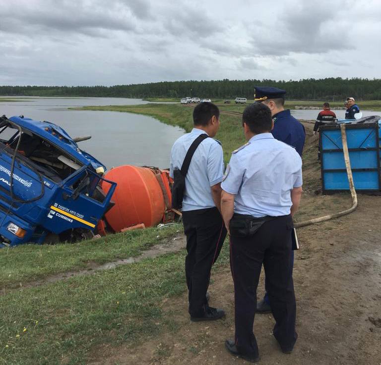 "ДТП произошло из-за неудовлетворительного состояния дамбы на озере Чурапча, по которой проложена дорога, и прошедших накануне дождей автомобиль стащило с дорожного полотна. Опытный водитель транспортного предприятия предпринял все возможные меры по предотвращению опрокидывания, но несмотря на это избежать сноса автомобиля не удалось. АО «Энерготрансснаб» оперативно направило бригаду для организации перекачки топлива и подъема транспортного средства. Также к месту происшествия направлен сорбент для устранения возможного попадания топлива в почву или водоем. Озеро не используется для забора питьевой воды".