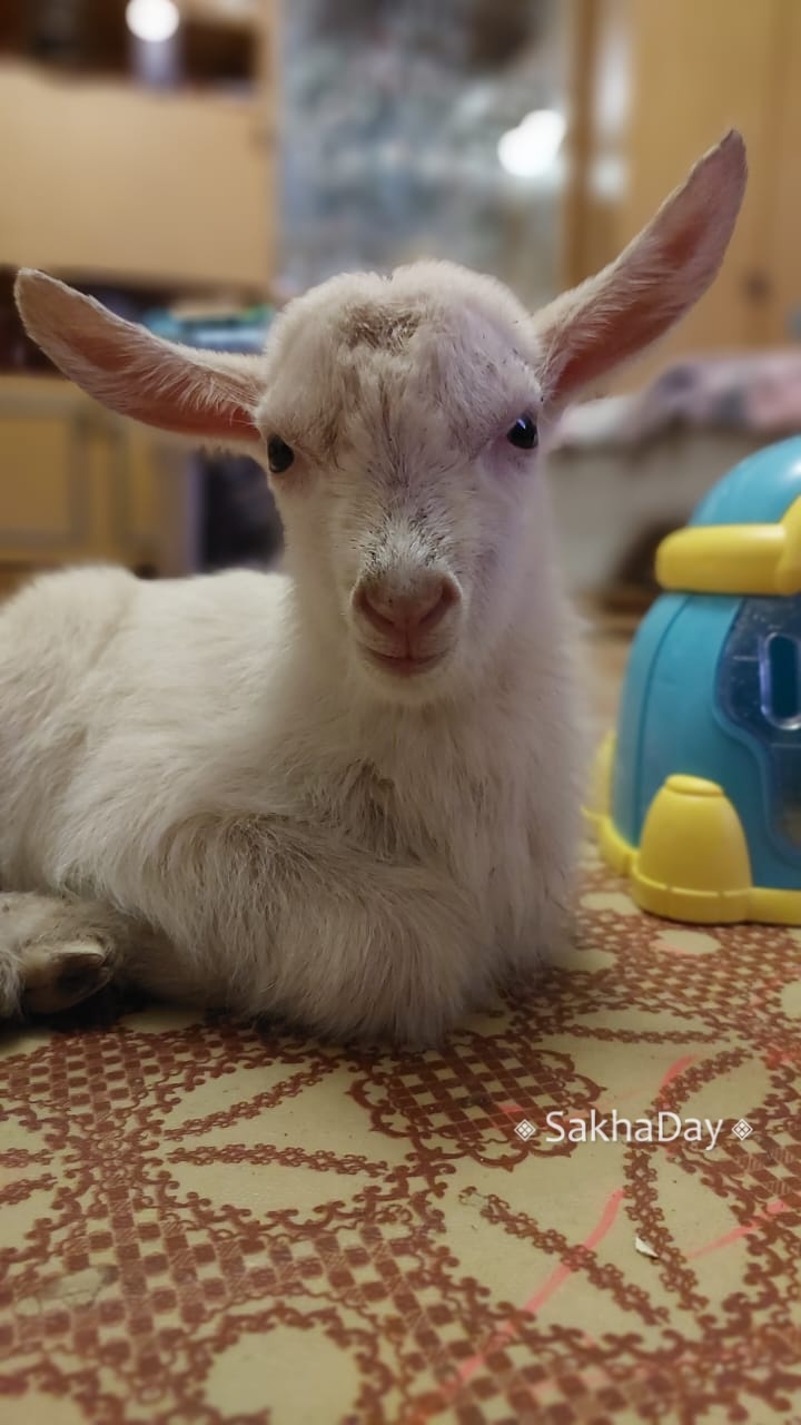 Сардаана как чуткая хозяйка заметила, что когда малыш хочет справить малую нужду, он стоит неподвижно как «замороженный», так сказать, концентрируется. И в это время домочадцы подставляют горшок. Таким образом, ухаживать за козленком стало проще.
