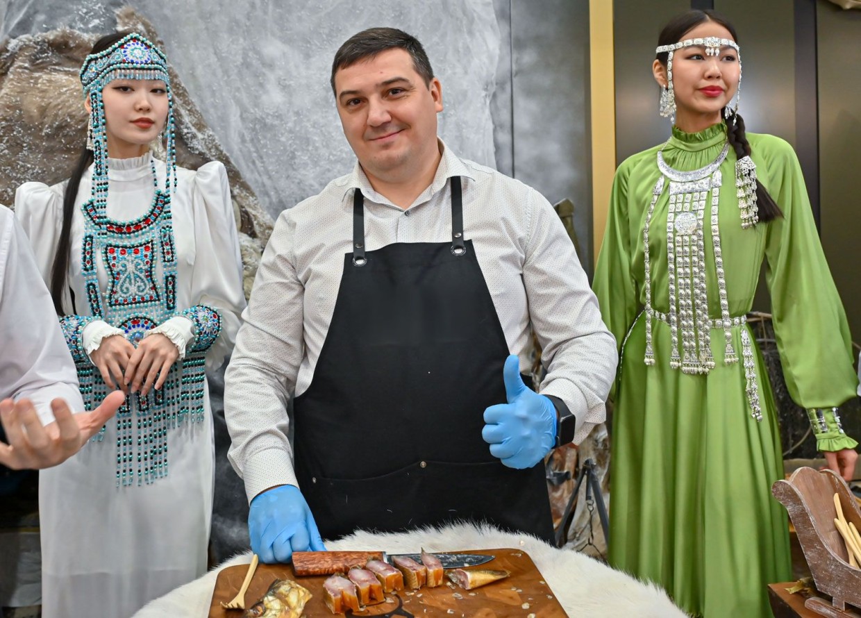 Гастрономическая программа проходит в тематической зоне, украшенной в стилистике якутской рыбацкой деревни. Покупатели увидят предметы быта рыбака, различные снасти и приспособления, а также национальные костюмы.