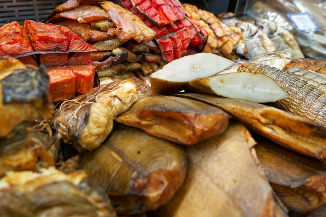В Москве организовали Дни Якутии на рыбном рынке, где на продажу выставили традиционные якутские деликатесы — слабосоленая, вяленая рыба, рыба холодного копчения, а также строганина.