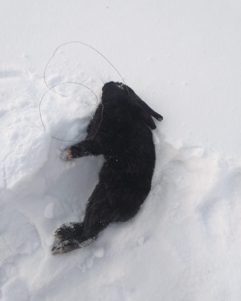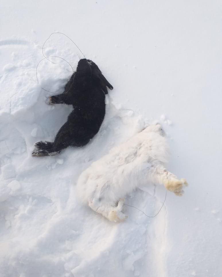 Абсолютно чёрный заяц был добыт сегодня на петлю в Нюрбе, сообщает @bult_alt.