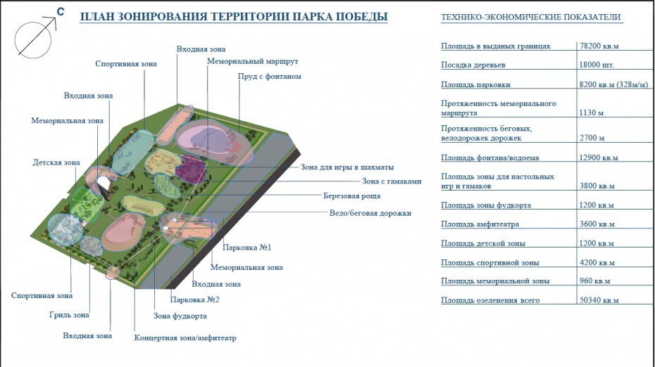 Парк Победы в Якутске начали строить в 2020 году по проекту Проектного бюро «Старт». Архитекторы запланировали в нем площадь, мемориальный маршрут, водоем с фонтаном, вело- и дорожки для бега, зоны для занятий спортом, настольных игр и гамаков, фудкорт и амфитеатр.