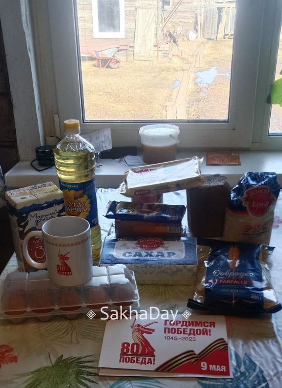 SakhaDay подготовил подборку фотографий продуктовых наборов, которые были подарены ветеранам в рамках празднования 80-летия Победы.