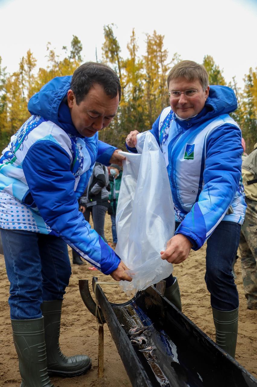 В зарыблении участвовали Глава Якутии Айсен Николаев, исполняющий обязанности первого вице-премьера Правительства Якутии Кирилл Бычков, генеральный директор – председатель правления АО «АЛРОСА» (ПАО) Сергей Иванов, министр экологии, природопользования и лесного хозяйства Якутии Сахамин Афанасьев и глава Мирнинского района Ришат Юзмухаметов.