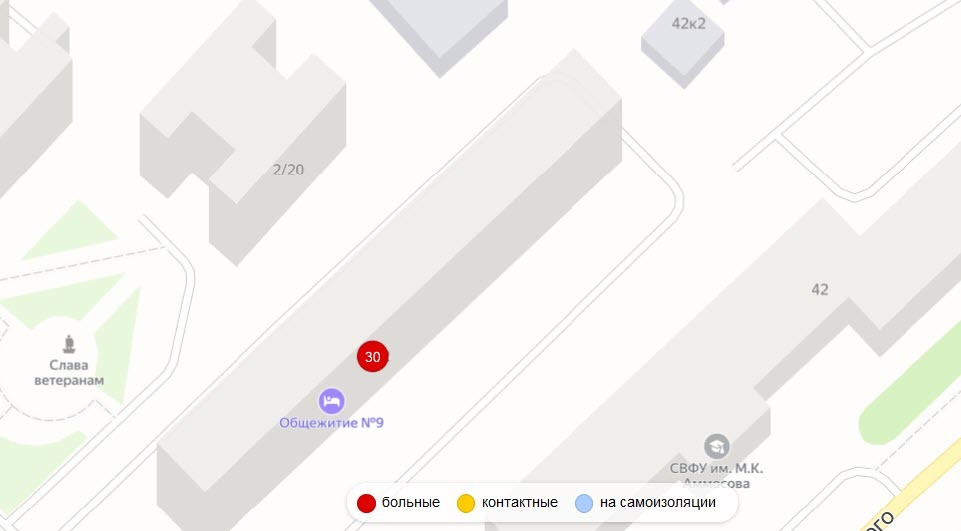 Сегодня на карте появилась информация о 30 заболевших коронавирусом, находящихся в студенческом общежитии №9.